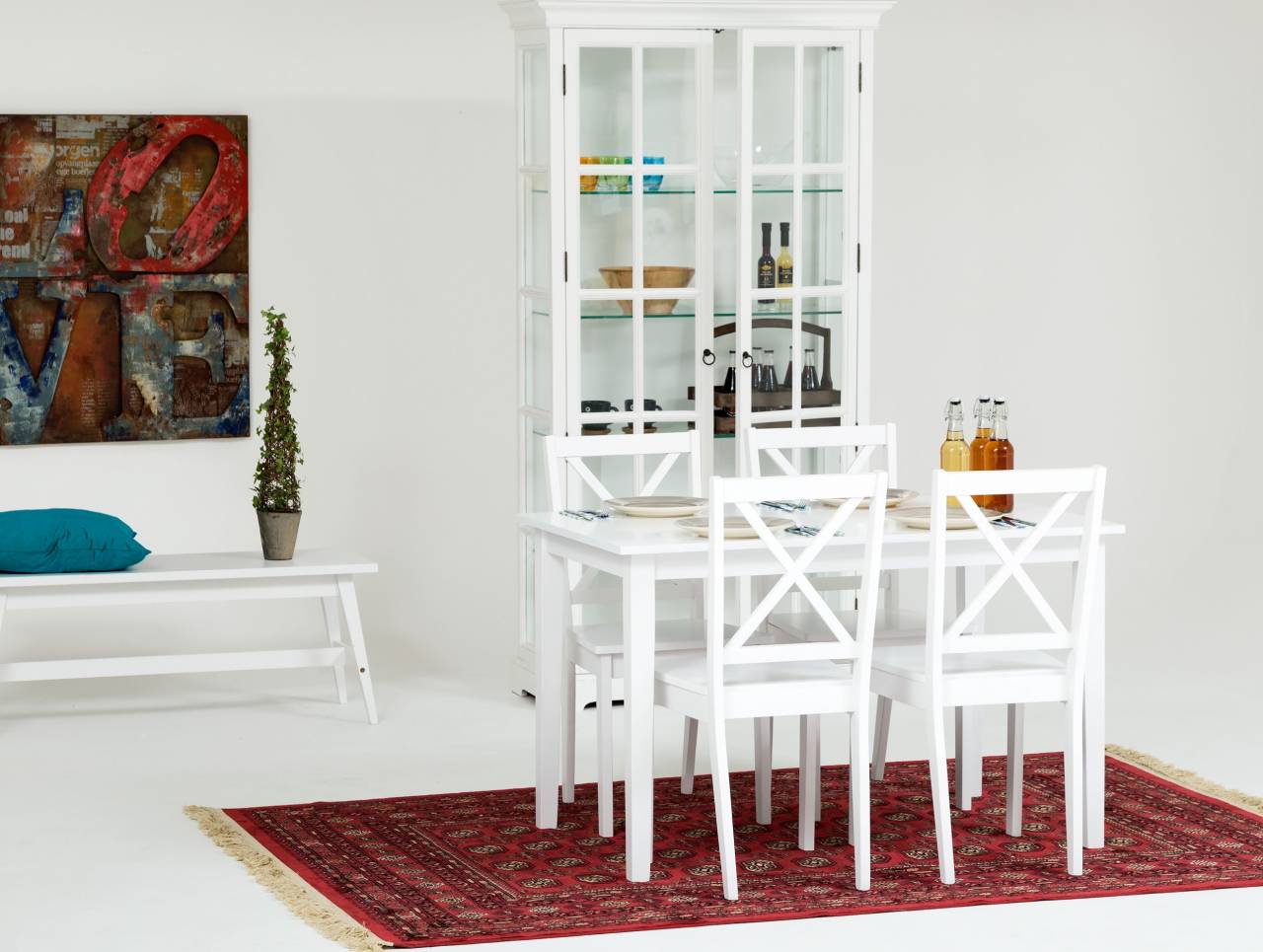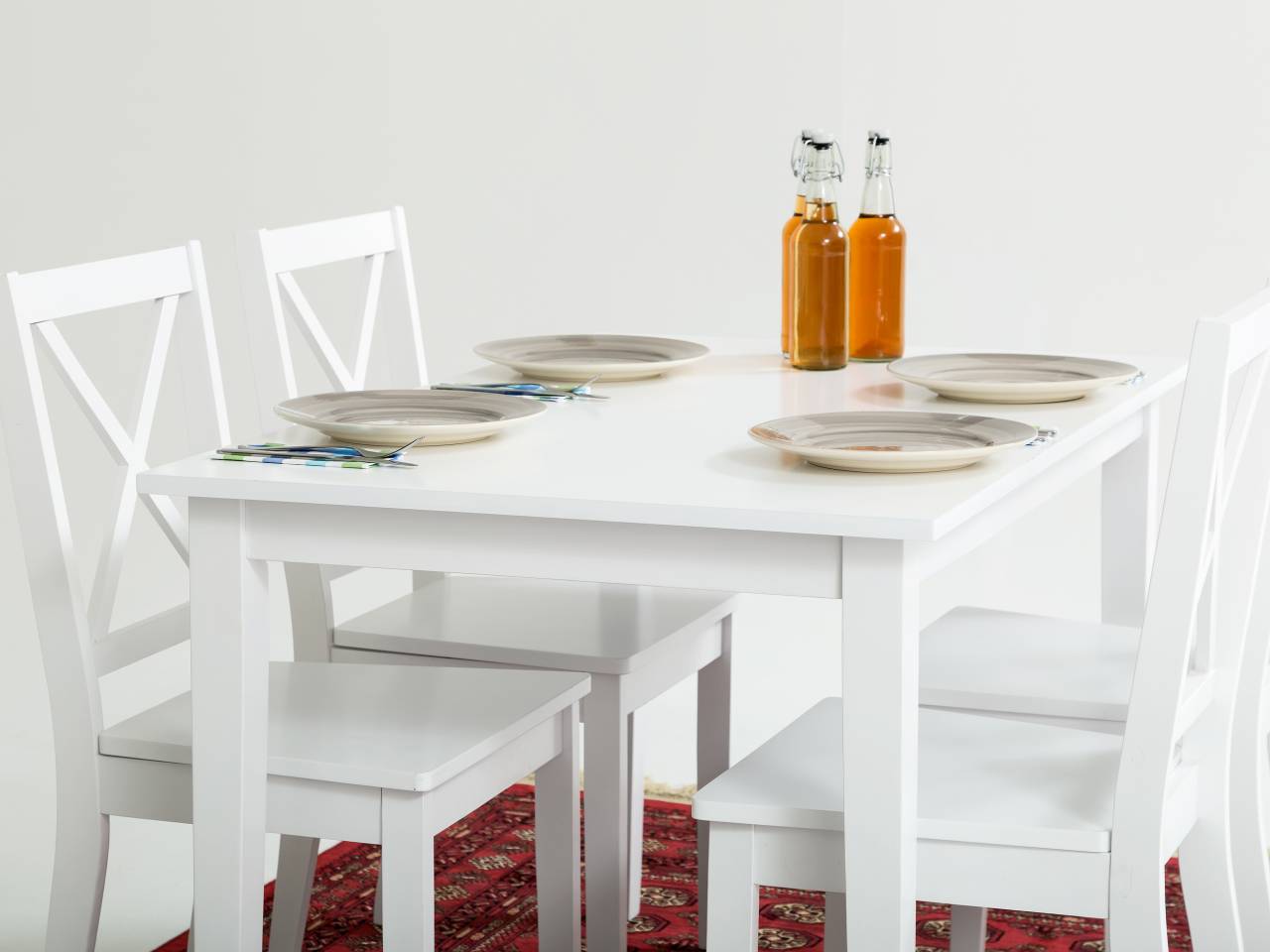 • Denna matgrupp som består av ett BARRINGTON bord och fyra stolar är som klippt och skuren för dig som söker ett mindre möblemang för köket eller sommarstugan. Möblernas klassiska formspråk, som påminner om klassisk svensk möbeltradition, och dess fräscha vita uppenbarelse bidrar till en idyllisk och mysig känsla som är svår att ta miste på. Tack vare heletens raka och stilrena kvalitéer passar matgruppen samtidigt utmärkt i det moderna och mer kliniskt inredda hemmiljöerna. Utan tvekan en mycket prisvärd och funktionell möbelgrupp helt enkelt.