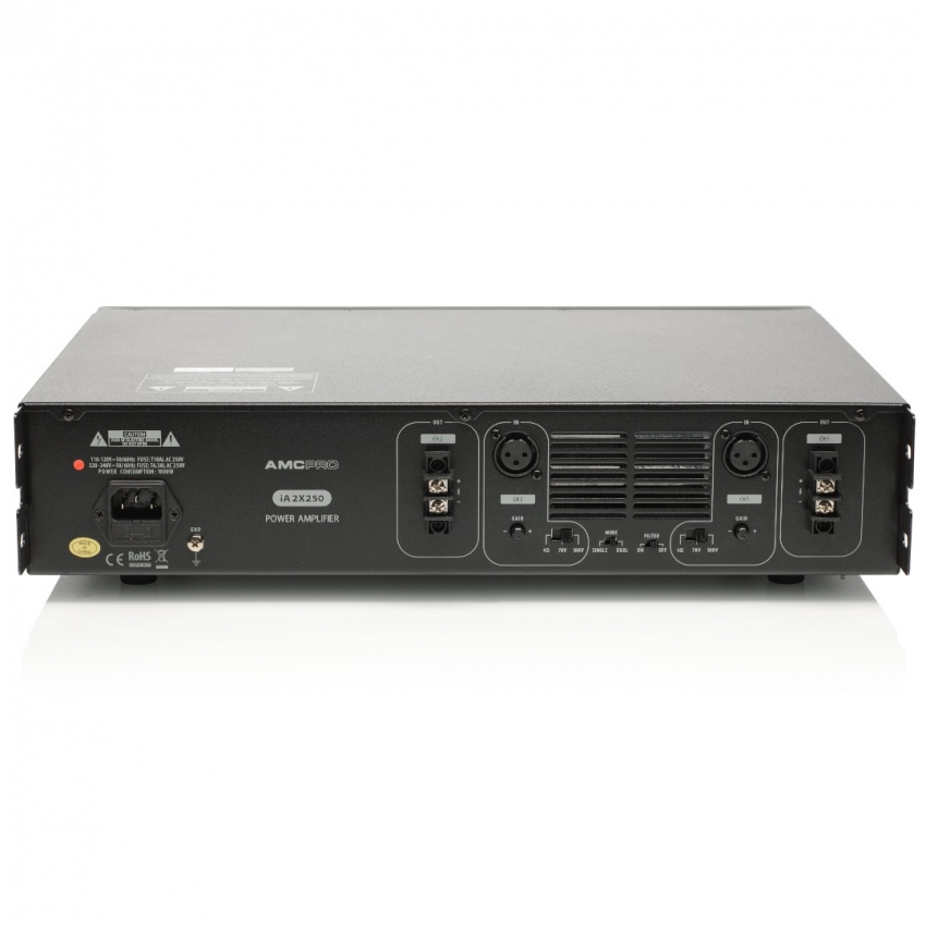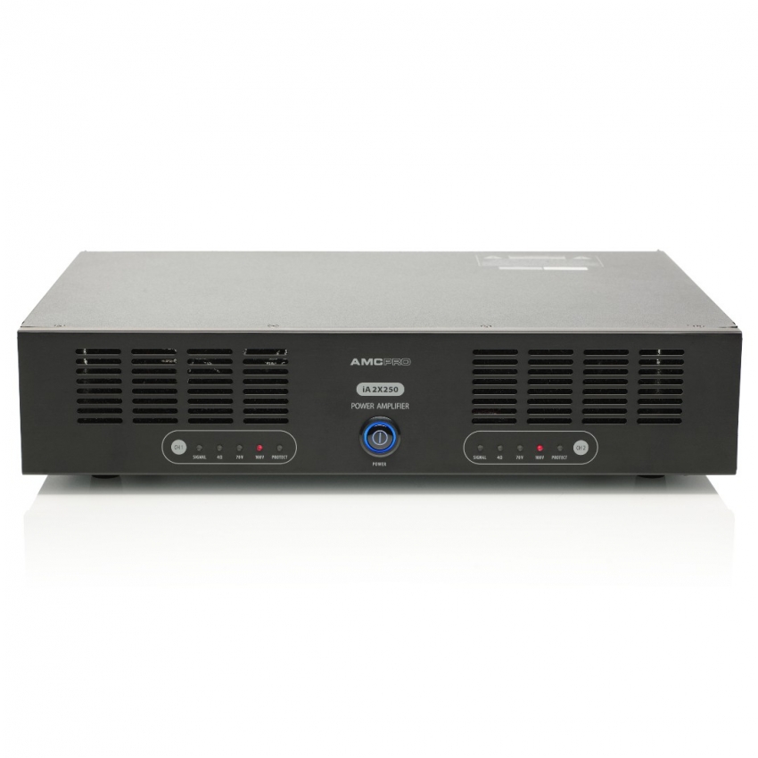 Two and four channel amplifiers for 100V, 70V and 4 Ωsound system lines. Switching power supply, input gain control, 100 V amplifiers with a selectable output power configuration. Fan cooling system, Phoenix output connectors, dual or single input mode, output configuration selector, HP filter, phoenix output connectors. Fan powered cooling balanced XLR input and link output connectors with ground lift; 24V DC power supply. These amplifiers are system, rack mount. The iA amplifiers are made for operation under hard conditions and require minimum maintenance designed to work under hard conditions and require the minimum maintenance after installation. These amplifiers are used in a medium and large public address and voice evacuation systems.