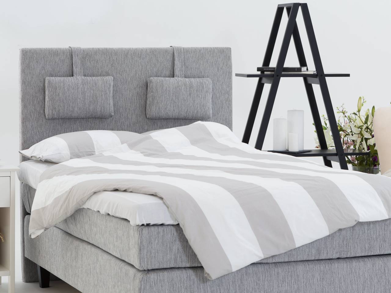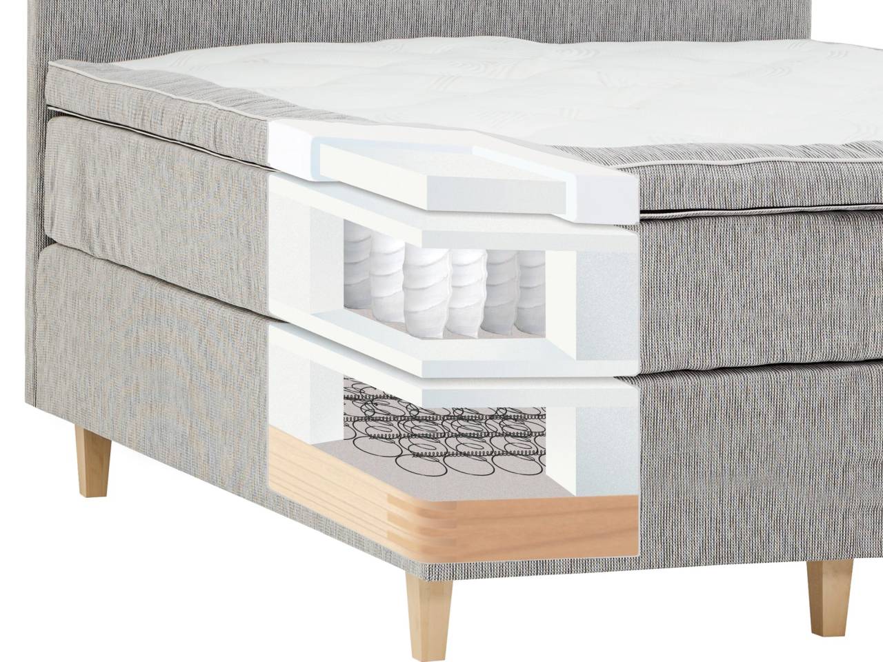 Kontinentalsäng med medium/hård komfort. Bonell/Pocketsystem inklusive bäddmadrass med latexkärna.
