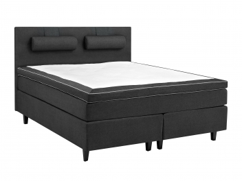 Kontinentalsäng med 8cm bäddmadrass i latex, svart jeans tyg. Mått: B 180 L 200 cm.