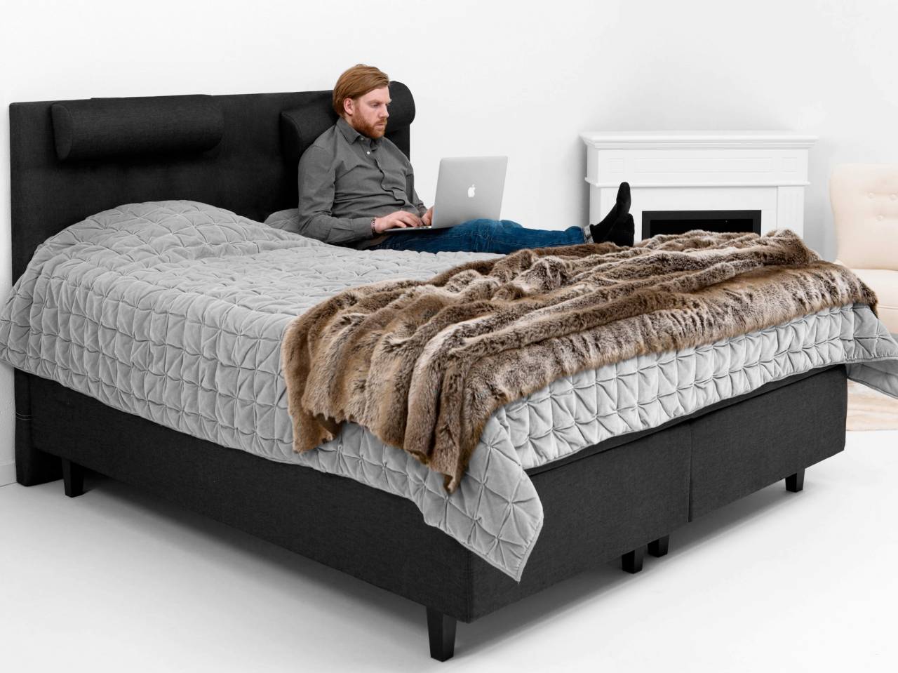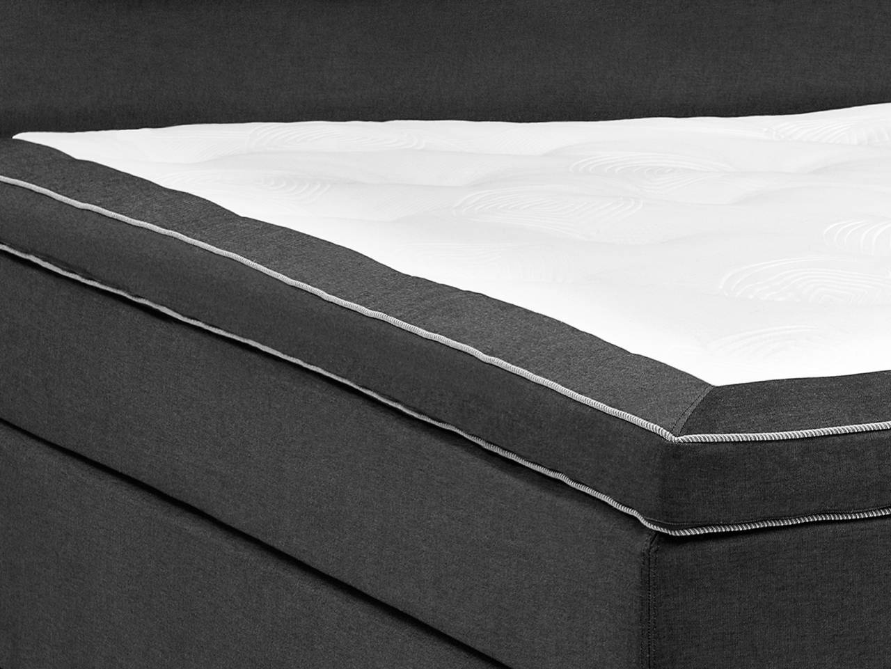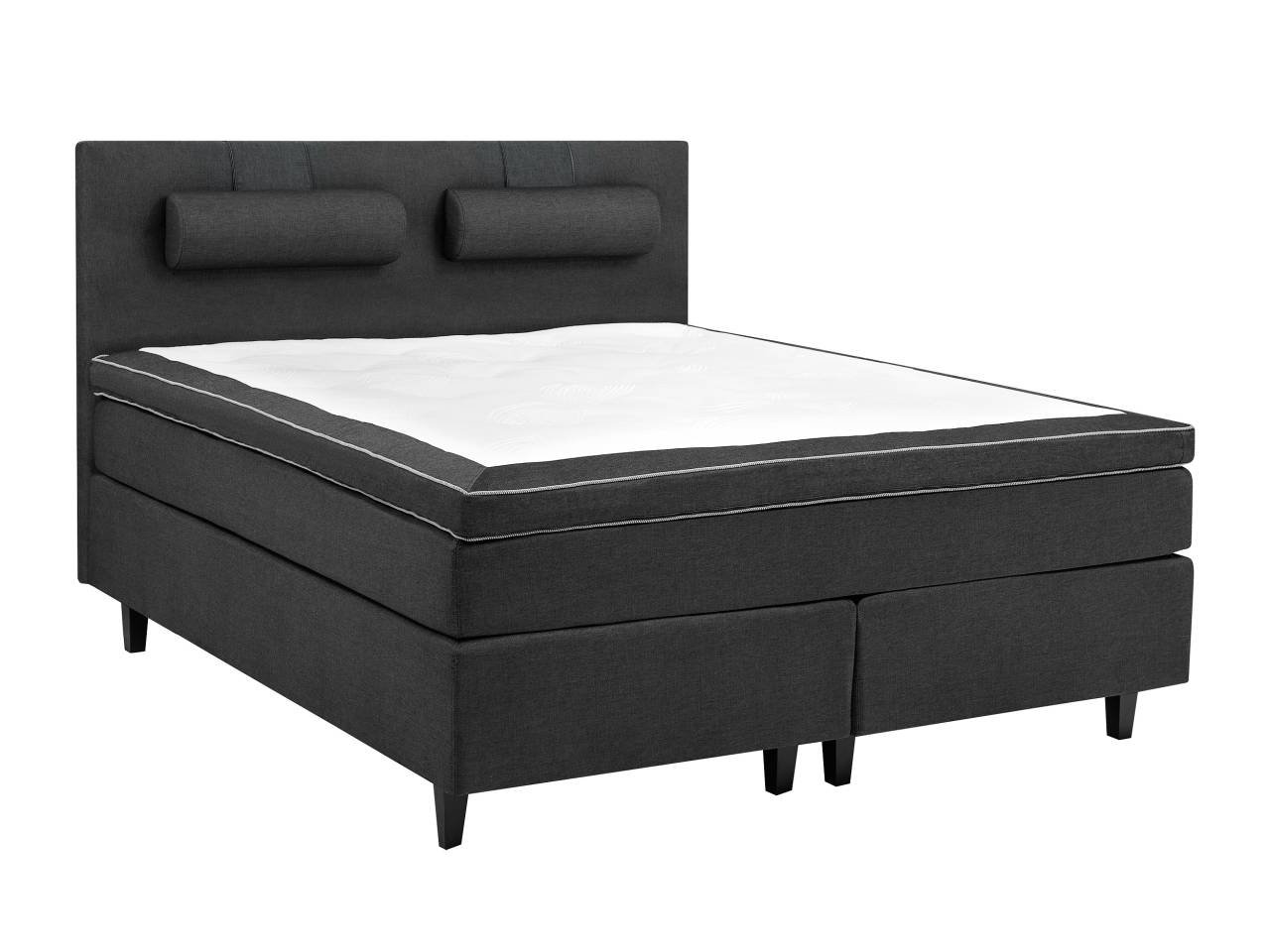 Kontinentalsäng med 11 cm bäddmadrass med latexkärna, svart jeanstyg. Mått: B 180 L 200 cm. Mer information