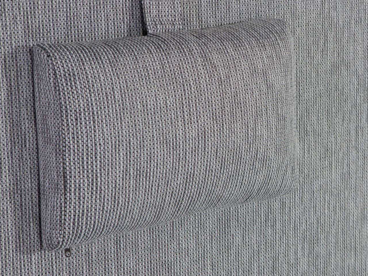 Större nackkudde i ljusgrått tyg. Mått: B 61, H 19, Tjocklek 12 cm.