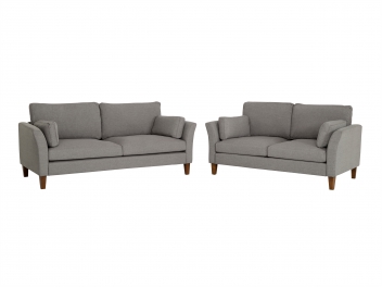 Snygg soffgrupp i grått tyg. En charmig och komfortabel soffgrupp för slott och koja!